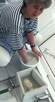 Nun wird geschliffen und ausgearbeitet, dann folgt der erste Brand! Erst danach - Gelingen immer vorausgesetzt - folgen Bemalung und eine variable Anzahl von Farbbränden. Zuletzt wird die Puppe zusammengesetzt.